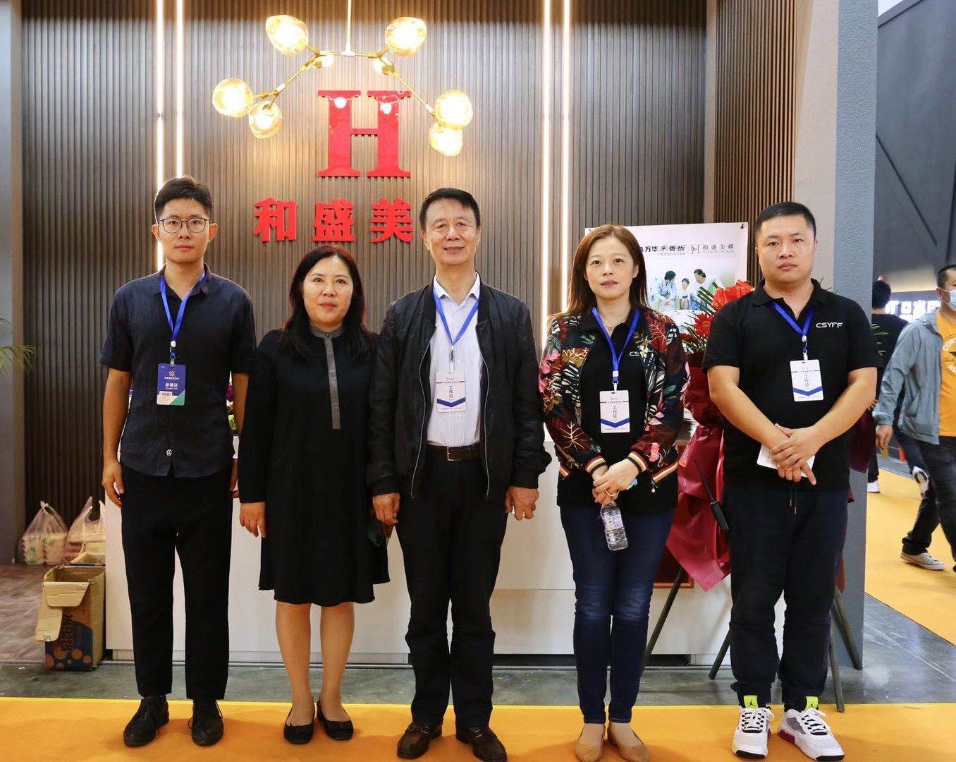 辽宁家具协会会长祖树武、副会长白红、定制家居部长孙林参观了和盛美麟展位并合影留念