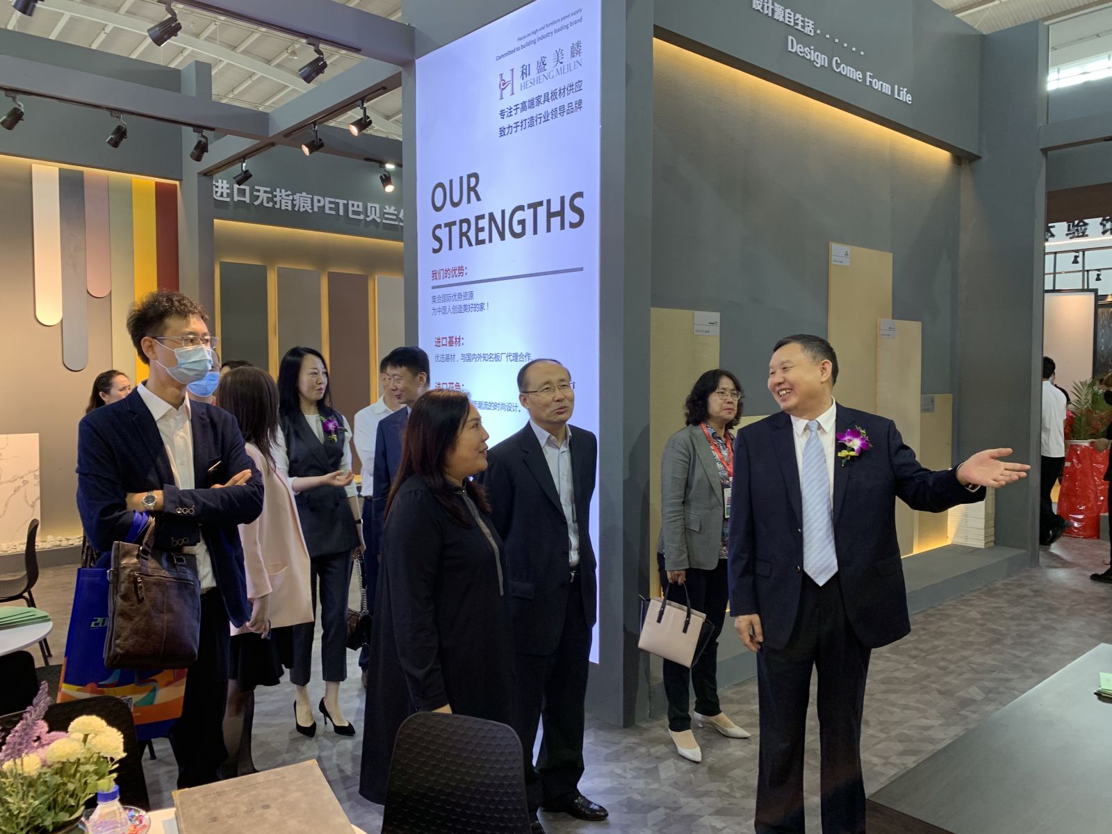 沈阳市政府副市长李松林、中国家具协会理事长徐祥楠、中国林产工业协会法人代表、副会长兼秘书长石峰、中国家具协会副理事长屠祺、沈阳市政府副秘书长陈佳标、沈阳市工信局副局长李华民、沈阳市商务局副局长岳贵君、全国工商联家具装饰业商会常务副秘书长王延平等政府、国家协会领导,在辽宁省家具协会、辽宁省工商联家具建材装饰行业商会、沈阳家具产业协会会长祖树武、常务副会长兼秘书长白红、定制家居部长孙林的陪同下,参观和盛美麟展位,并给予高度评价。